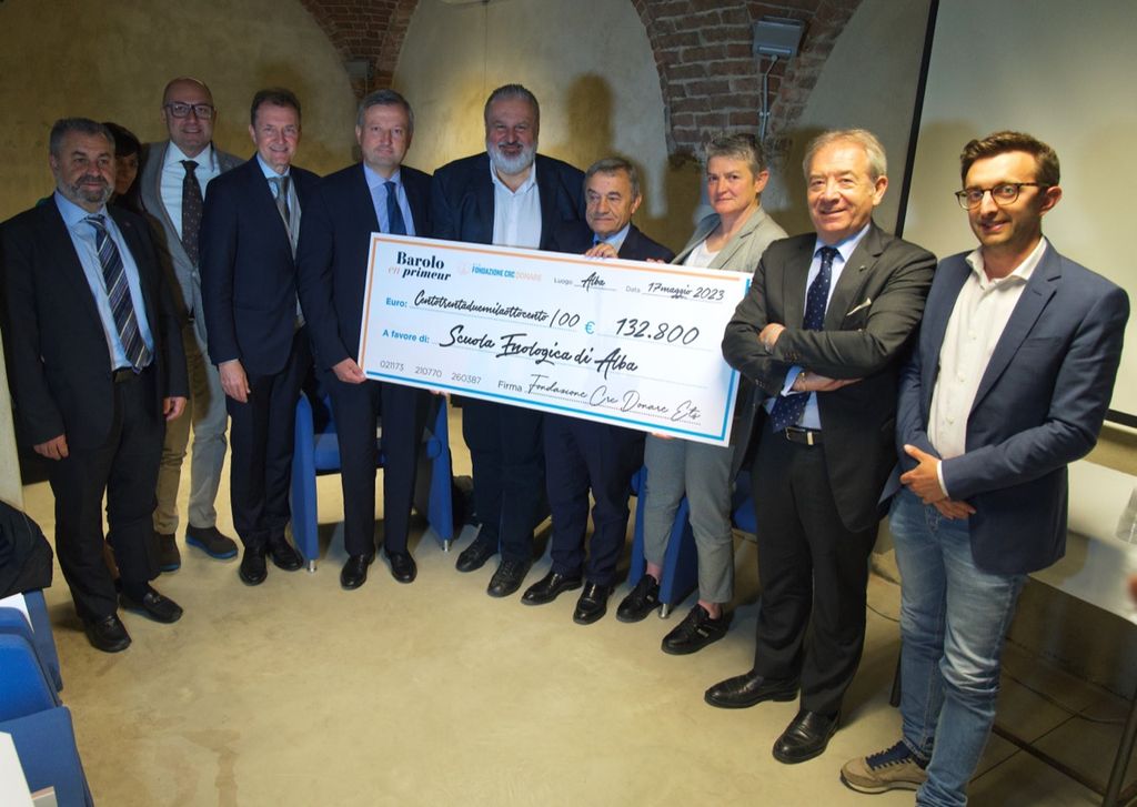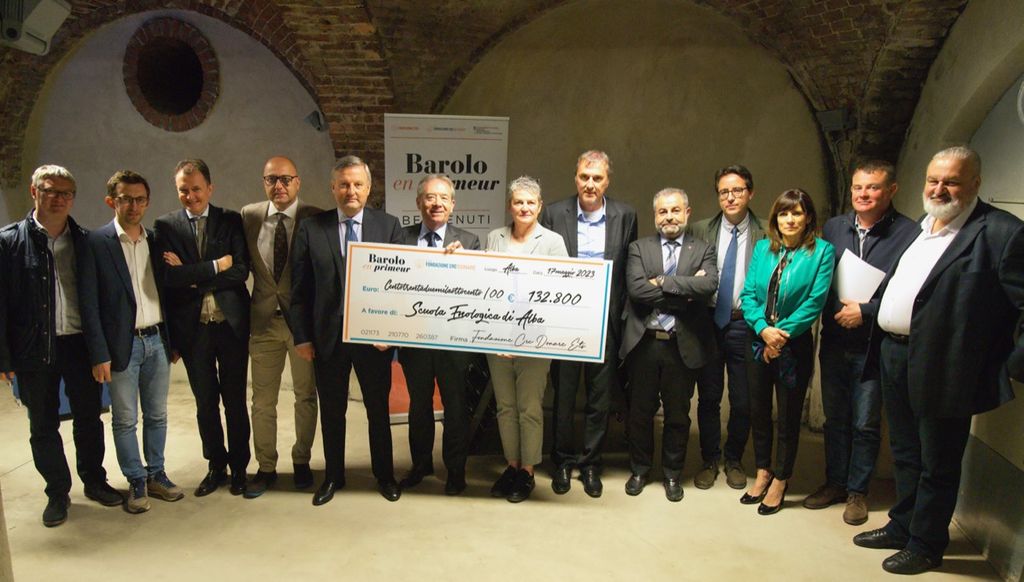 Questa mattina presso la sede dell'istituto in corso Enotria ad Alba è stato consegnato un assegno da 132.800 euro alla Scuola Enologica, frutto delle 1.200 bottiglie di Barolo e Barbaresco messe all’asta a ottobre 2022 durante la seconda edizione di Barolo en Primeur, donate da 75 produttori del Consorzio di Tutela Barolo Barbaresco Alba Langhe e Dogliani.