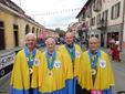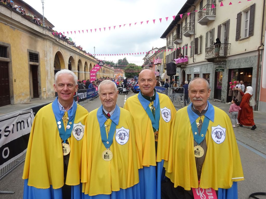 In posa tra i confratelli e le consorelle anche l’ex campionessa di sci Stefania Belmondo, che ha potuto ammirare tutto della loro uniforme. Dal collare dove sono appuntate le spillette collezionate in occasione di gemellaggi con altre confraternite gastronomiche, fino al medaglione con l’effigie della Zizzola, simbolo di Bra, passando dal distintivo logo in cui si vede un vitello, ingrediente principale della prelibatezza locale.