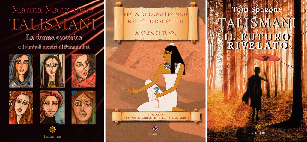 Talismani – la donna esoterica e i simboli arcaici di femminilità di Marina Mangiapelo mostra volti femminili che rispecchiano la simbologia sacra e gli antichi miti e come essi si colleghino al nostro presente e al concetto di bellezza universale.