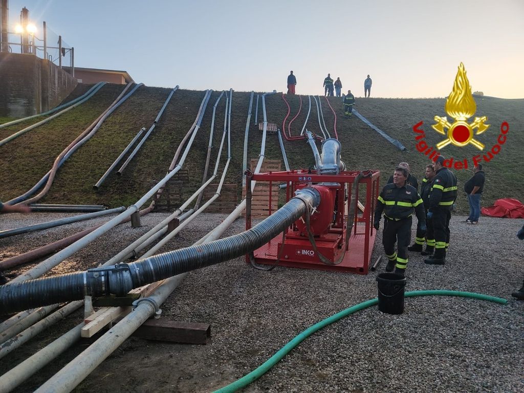 La colonna, composta da nove unità, al lavoro a Conselice con un'idrovola ad alta capacità di pompaggio