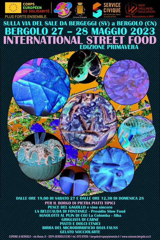 Bergolo già sulla Via del Sale, ha riscoperto questo antico “baratto” del sale che conservava il cibo a lungo, in assenza del recente frigo. Il pesce o meglio il fritto di pesce del Gagollo con pescato freschissimo ,sarà l’elmetto principale dello Street Food della primavera 2013, non mancheranno gli agnolotti serviti con il track Food, la farinata o belacauda di Fontanile presidio Slow food, carne grigliata, piatti e dolci etnici e il gelato alla nocciola .