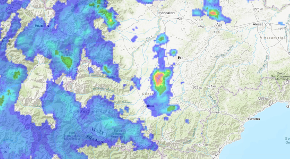 Il temporale si sta ora spostando verso la zona di Savigliano e Genola.