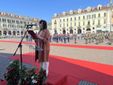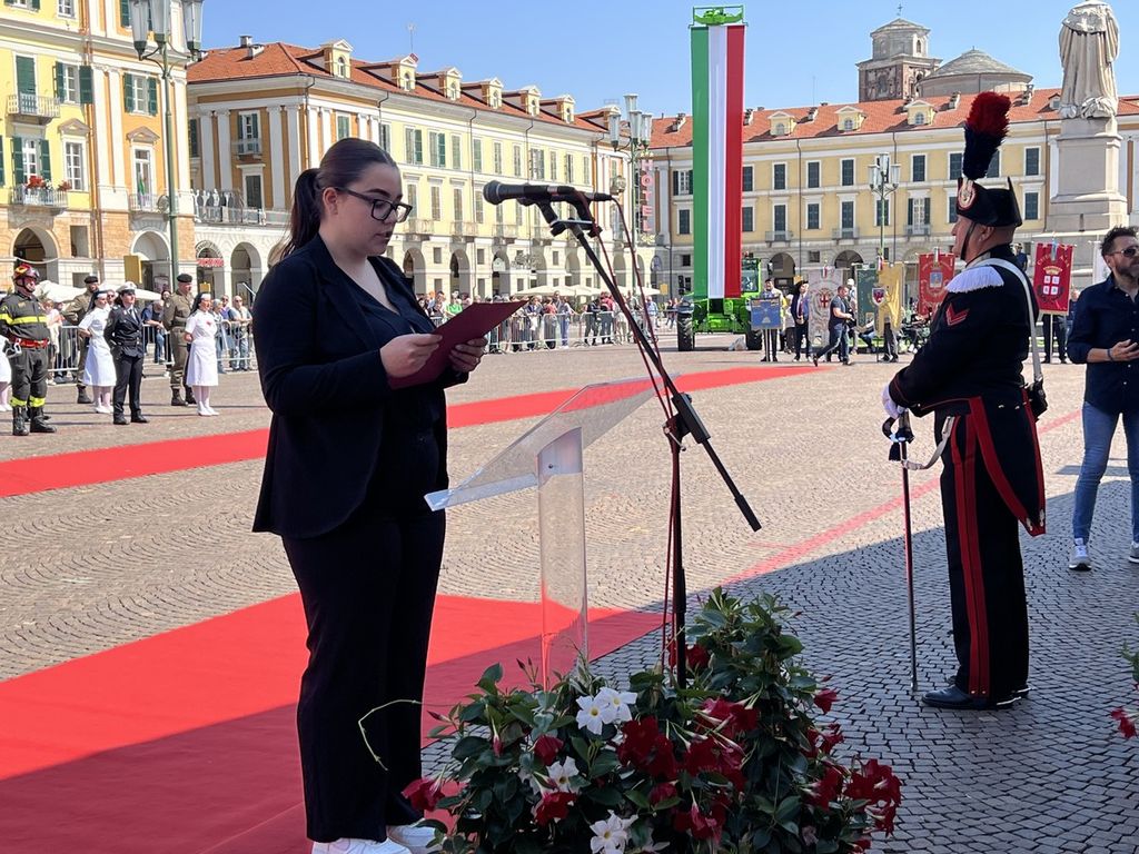 La celebrazione ha preso il via con la cerimonia dell'Alzabandiera, l'intervento di un picchetto armato del II° Reggimento Alpini di Cuneo e di una rappresentanza interforze dei Corpi Armati e di Soccorso Pubblico nonché della Banda Musicale "Duccio Galimberti" Città di Cuneo. L'inno nazionale è stato cantato dalla soprano cuneese Serena Garelli.