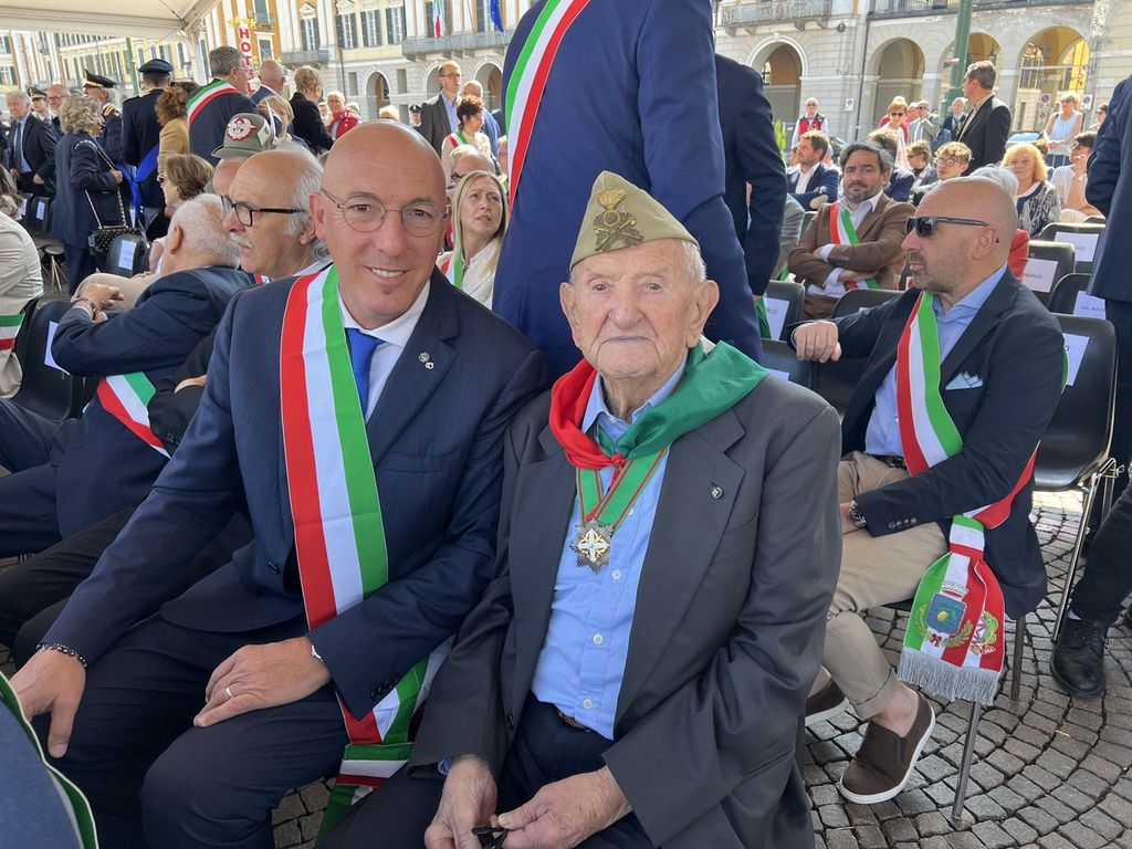 Standing ovation per il partigiano Ugo Re, accompagnato dal sindaco di Lequio Tanaro Beppe Trossarello. Classe 1925, 98 anni, è ancora un lucido testimone degli orrori del periodo nazista. "L'amicizia ci consente di vivere in pace", ha detto tra gli applausi, ricordando di aver salvato 15 persone dalla fuciliazione, rischiando la sua vita pur di non tradire i suoi amici.