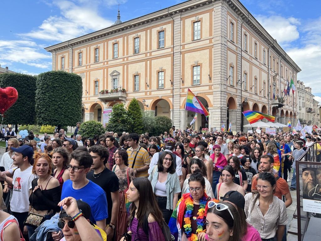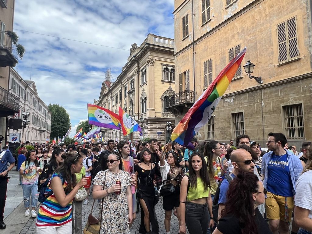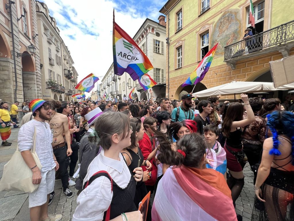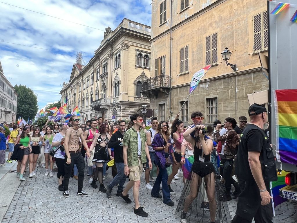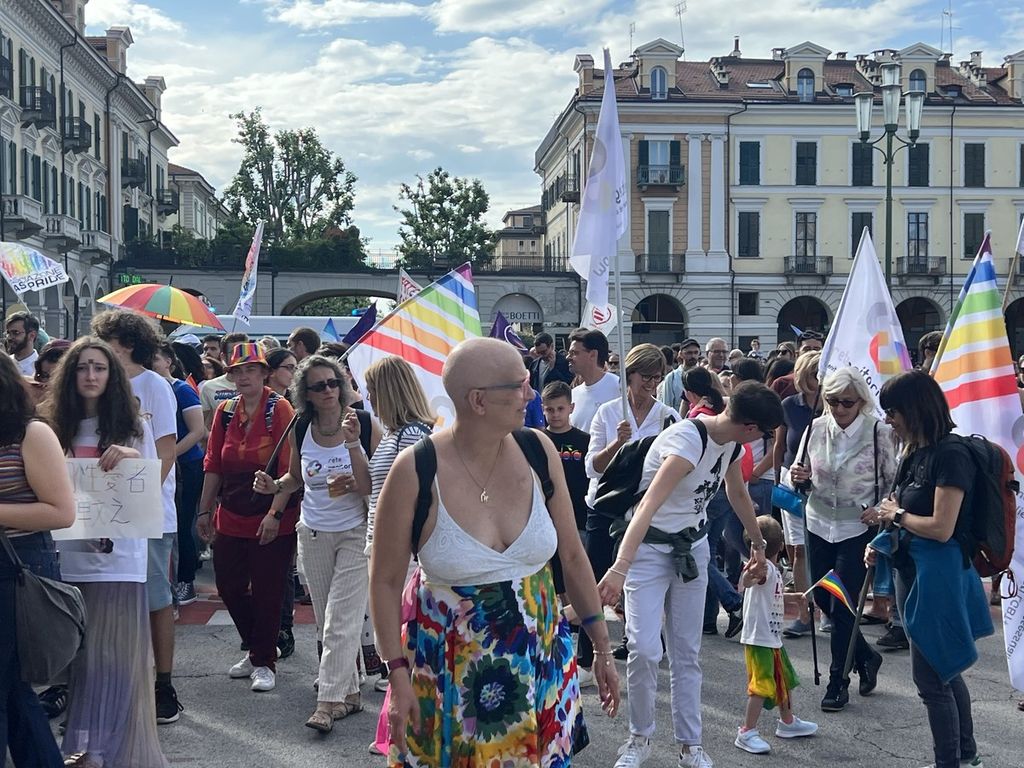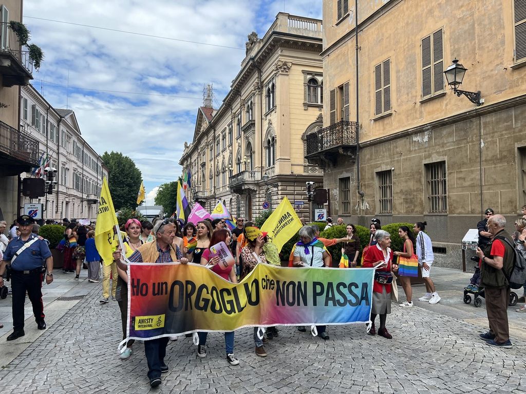 Il popolo arcobaleno si è dato appuntamento alle 16 in piazza Torino per raggiungere il parco della Resistenza, passando sotto la casa di Duccio Galimberti nel cuore del capoluogo.