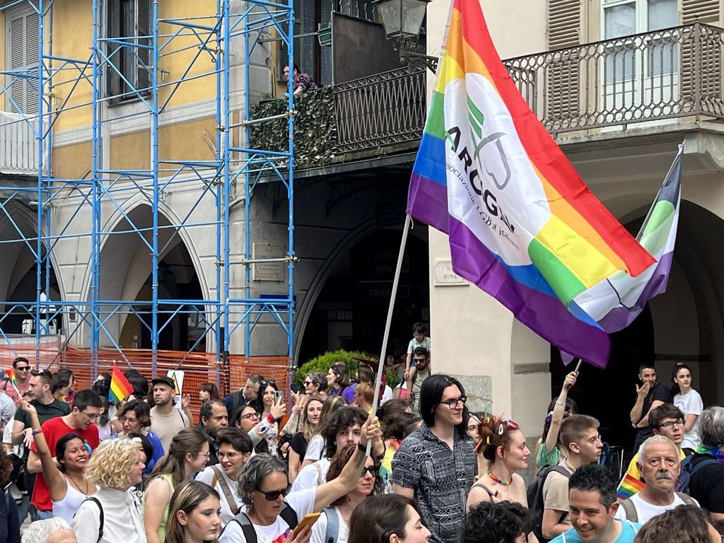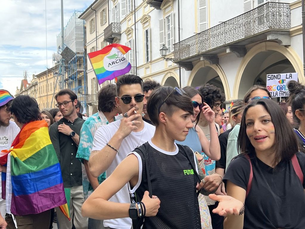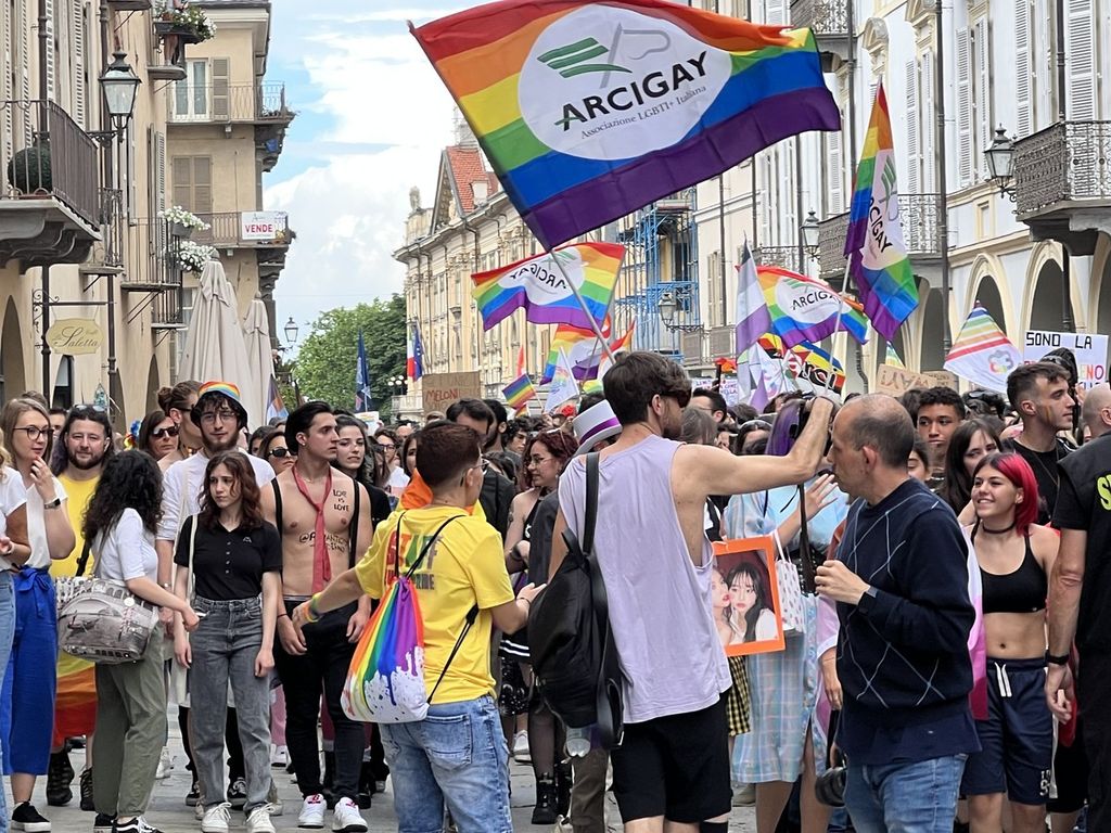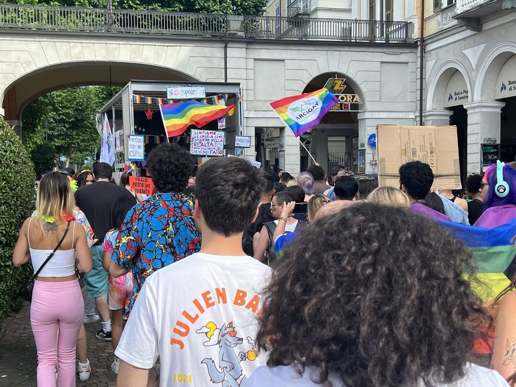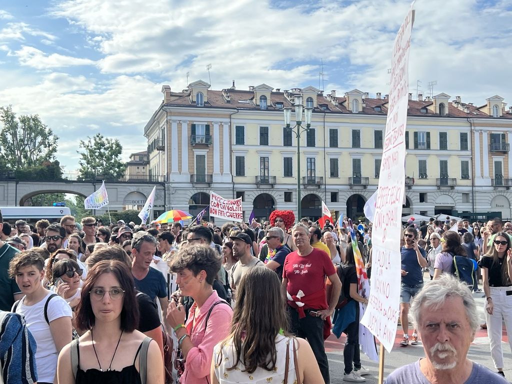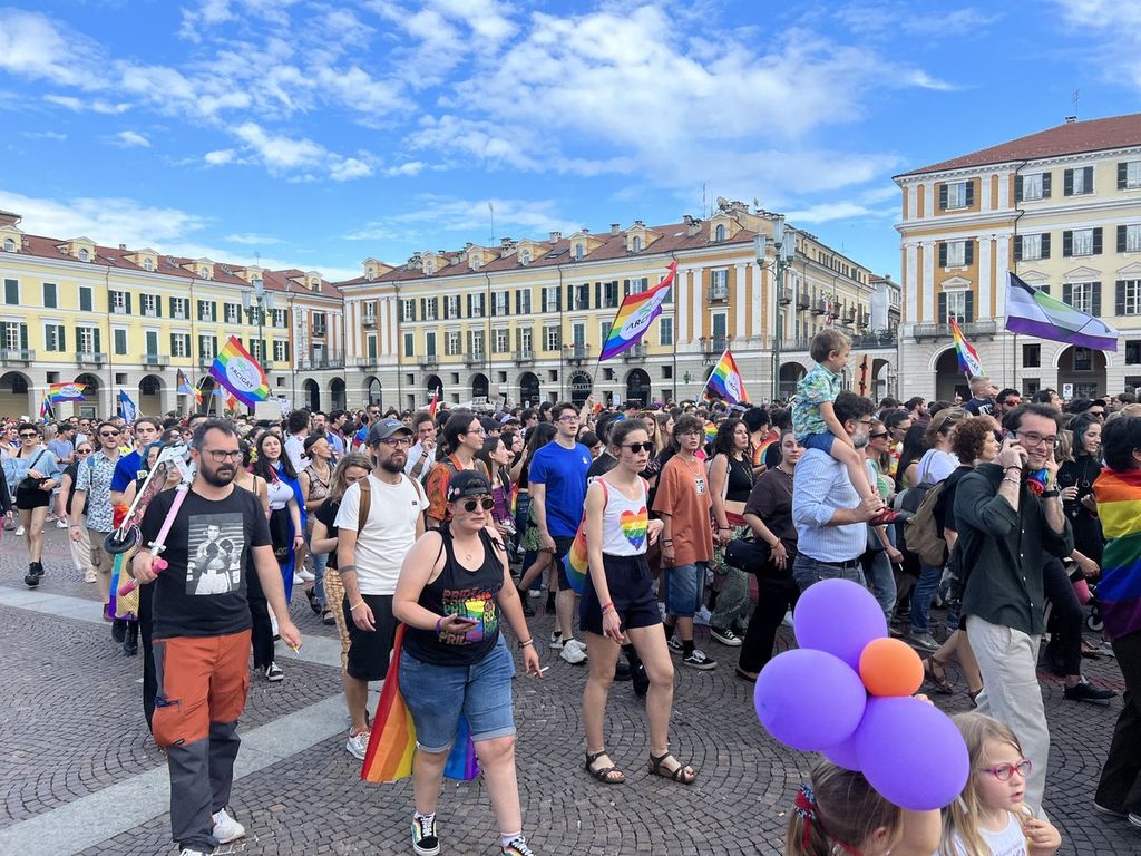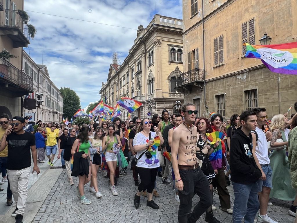 Il popolo arcobaleno si è dato appuntamento alle 16 in piazza Torino per raggiungere il parco della Resistenza, passando sotto la casa di Duccio Galimberti nel cuore del capoluogo.
