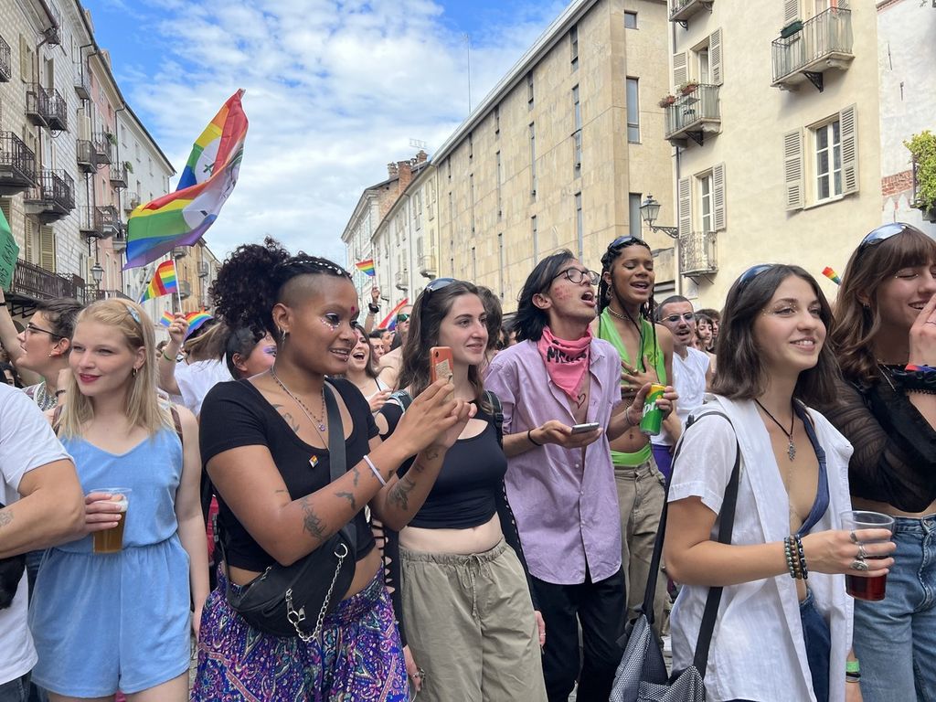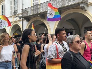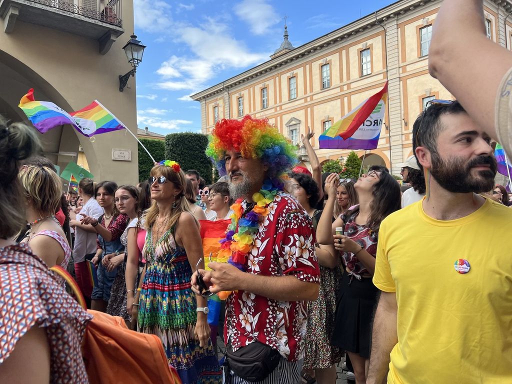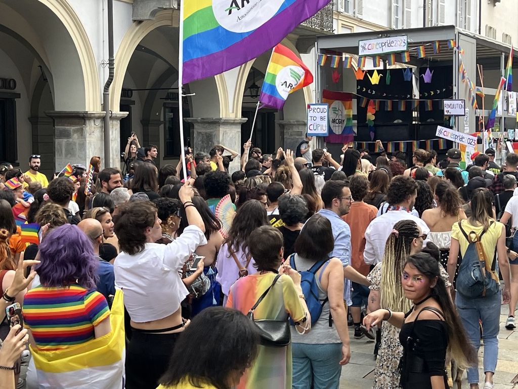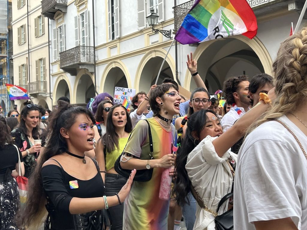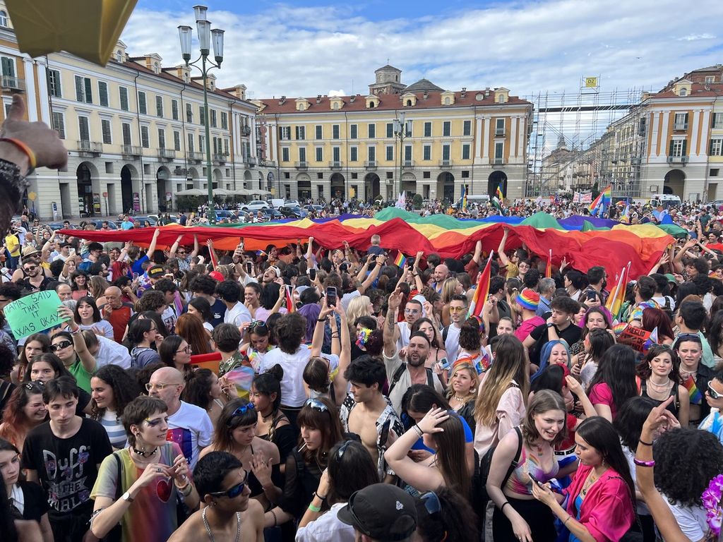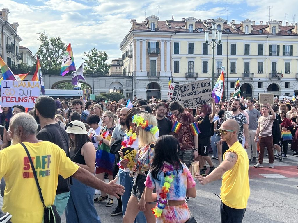 Il popolo arcobaleno si è dato appuntamento alle 16 in piazza Torino per raggiungere il parco della Resistenza, passando sotto la casa di Duccio Galimberti nel cuore del capoluogo.