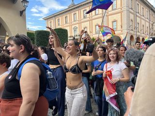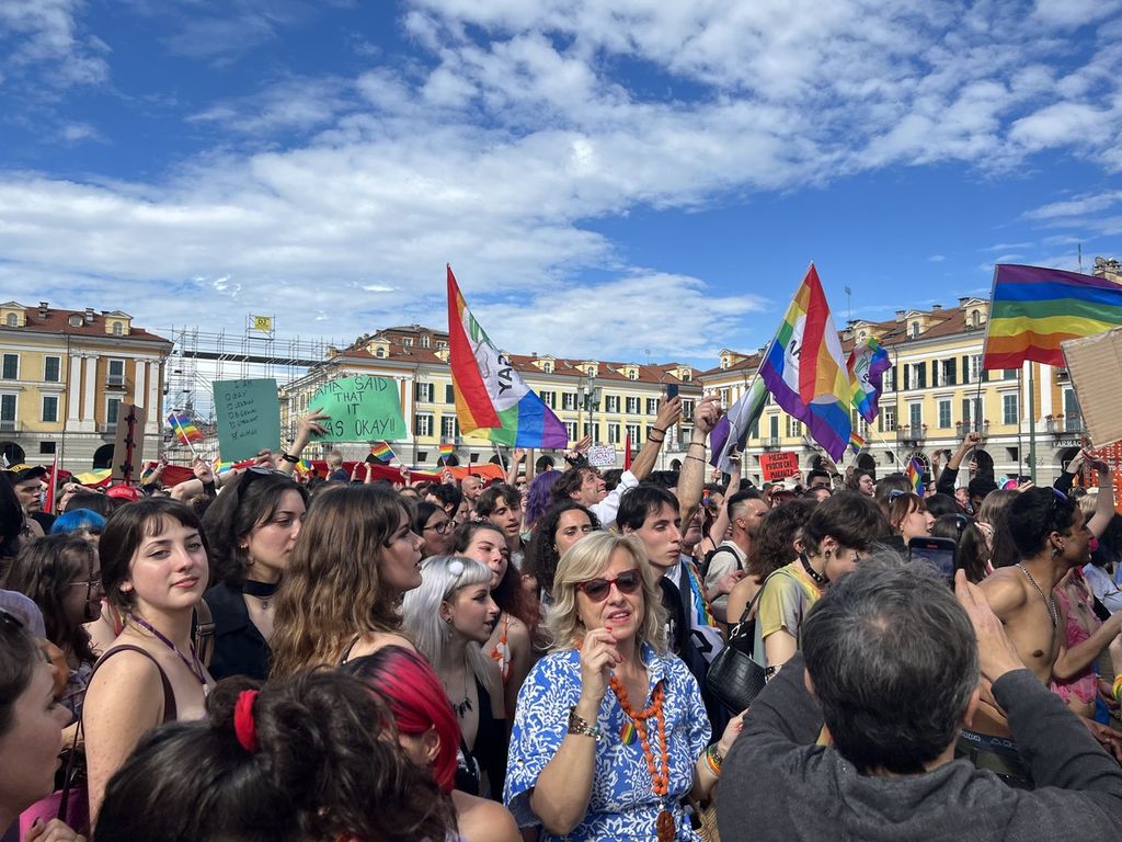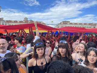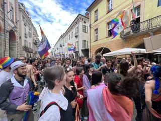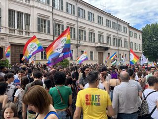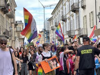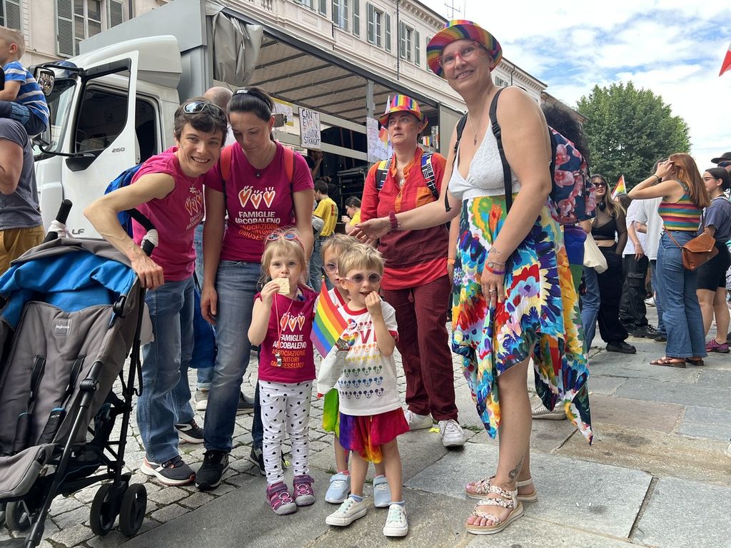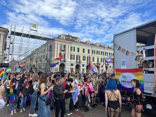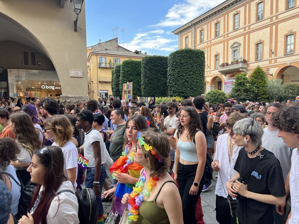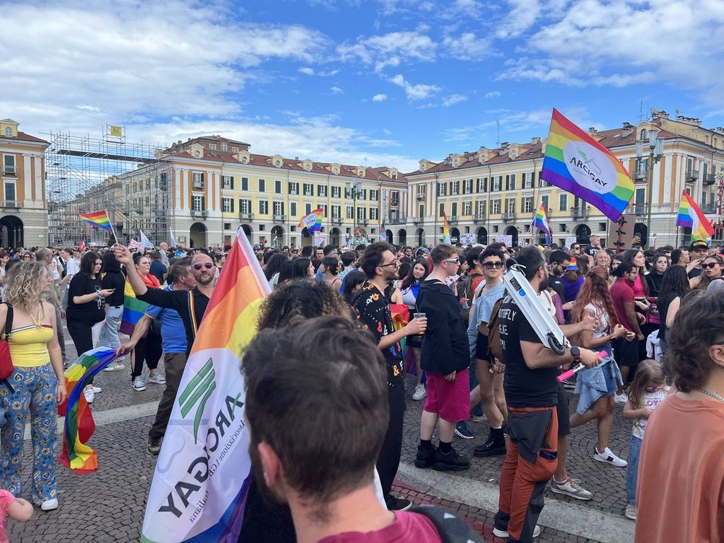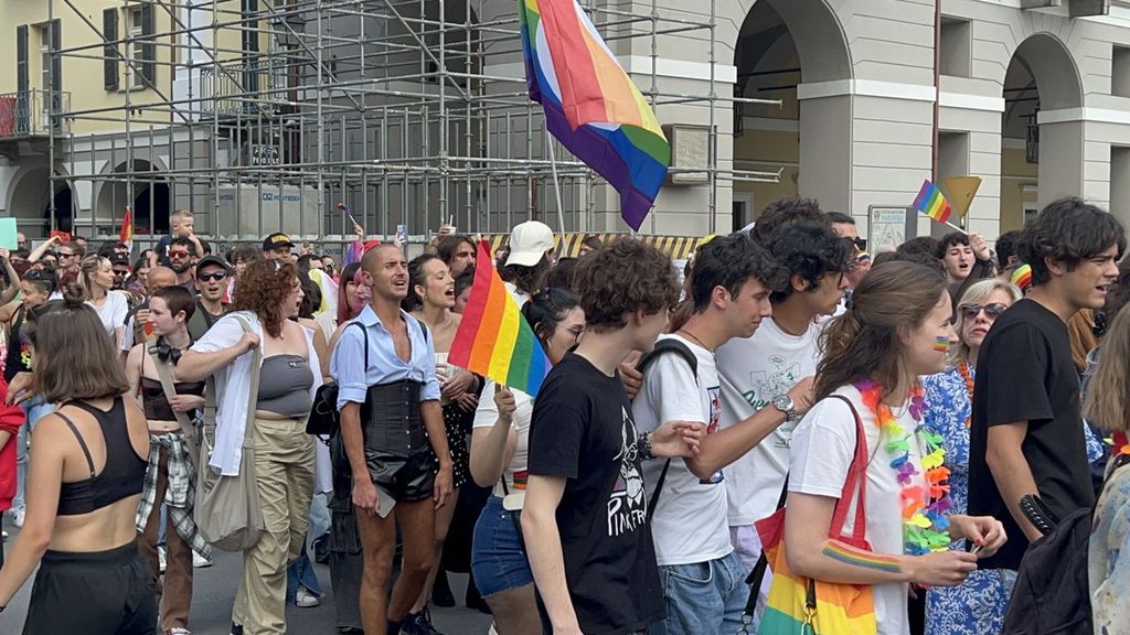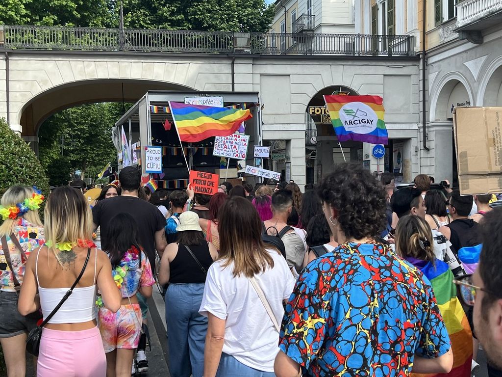 Il popolo arcobaleno si è dato appuntamento alle 16 in piazza Torino per raggiungere il parco della Resistenza, passando sotto la casa di Duccio Galimberti nel cuore del capoluogo.