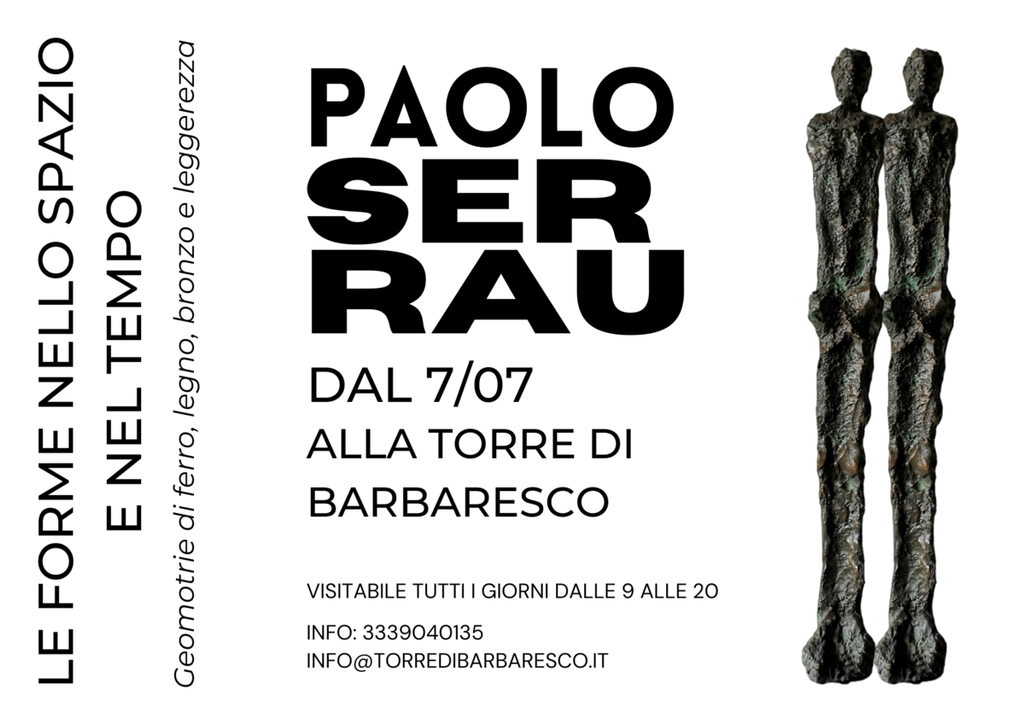 Dal 7 luglio alla Torre di Barbaresco sarà allestita la mostra dell'artista Paolo Serrau, "Le mostre nella forma e nel tempo", geometrie di ferro, legno, bronzo e leggerezza. La rassegna sarà visitabile tutti i giorni dalle 9 alle 20.