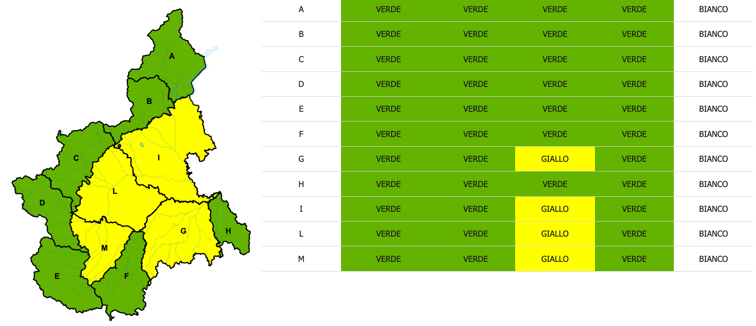 Da qui l’allerta meteorologica e idraulica al secondo livello di attenzione (giallo) con riguardo alle zone della Pianura Cuneese, Pianura Torinese e Colline e delle Valli Belbo e Bormida.