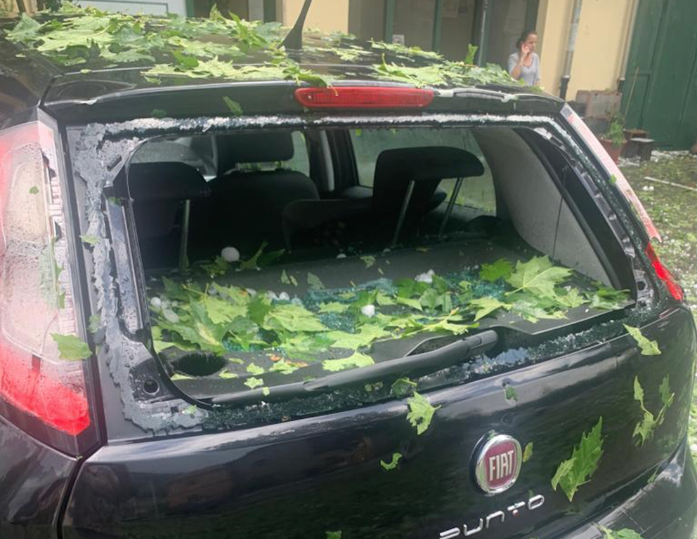 L'AUTO DISTRUTTA DALLA GRANDINE A CORTEMILIA