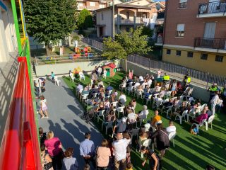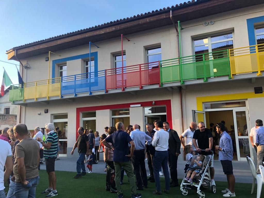 I bimbi corrono incuranti dell'inaugurazione della nuova scuola dell'infanzia di Grinzane Cavour. Sfrecciano sulle altalene, corrono, scintillano nell'ultima coda dell'estate. I genitori vigilano e ricordano quando anche loro si sentivano puntini in questo cortile e c'era qualcuno che li rincorreva o li rimbrottava perché si fermassero. I ricordi diventano parole. "Io vicino a quel muretto giocavo con le formiche", si sente una voce. "Io, invece, qui ci sono nato, più di 80 anni fa", racconta il consigliere comunale Teresio Cravero, mentre mette a fuoco la disposizione dei muri e dei balconi, così diversi eppure così uguali. Don Antonello, benedicendo "le persone e non i muri" ricorda di quando questo edificio "era il cuore pulsante del paese, grazie alle suore salesiane e a quell'energia che sapeva di idee e di futuro".