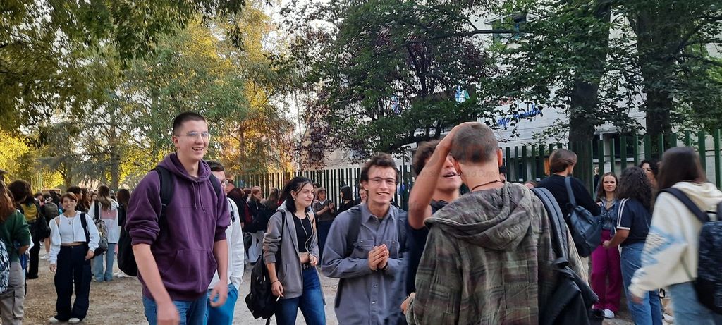 Baci e abbracci tra i ragazzi che ritornano tra i banchi dopo l'estate.