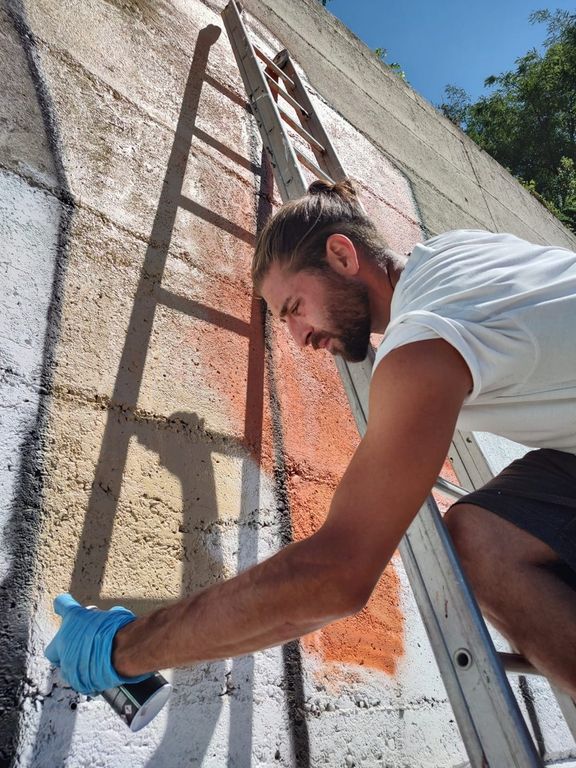 “I nostri lavori sono realizzati interamente con bombolette spray e nascono dall’esigenza di riqualificare e valorizzare le nostre zone con l’arte della Cultura Hip-Hop” racconta.