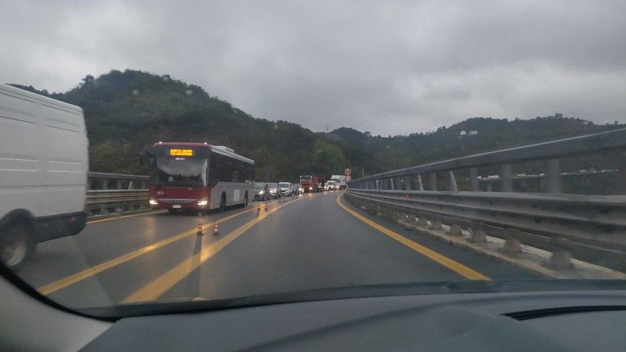 Traffico in tilt lungo l'autostrada A6 per un veicolo in avaria, pare un mezzo pesante, nel tratto a doppio senso di marcia compreso tra Savona e Altare, in direzione Torino.