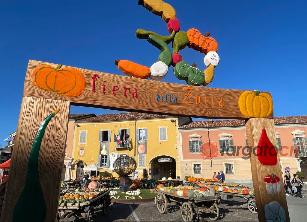 Apertura del mercato della zucca nel centro del paese