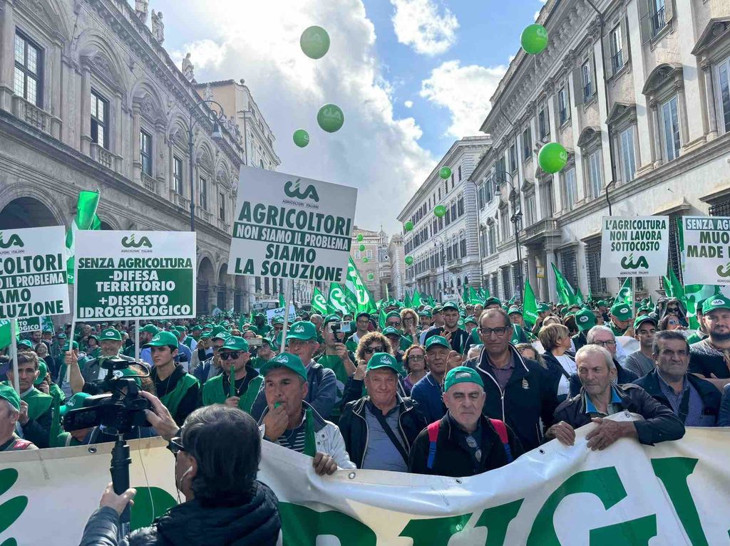 “Non toglieteci il futuro”, è stato l’appello sottolineato dalla piazza. “Noi non siamo il problema, ma la soluzione”, ha detto dal palco il presidente Fini rivendicando con forza il ruolo chiave svolto dal settore anche nella transizione green. Aggiungendo, poi: “A dispetto di tutte le fake news gli agricoltori non inquinano, rispettano da anni gli impegni ambientali anche mettendo a rischio i loro profitti; producono energie alternative e non sprecano acqua, ma la usano per ottenere cibi di qualità. Senza agricoltura, il Made in Italy non può esistere e la sicurezza alimentare non ha garanzie; non c’è presidio del territorio e custodia del paesaggio, anche contro il dissesto idrogeologico; le aree interne si spopolano ed economia e società non sopravvivono. Abbiamo, dunque, buoni motivi per reclamare più attenzione per le nostre aziende agricole. Deve rimetterle al centro l’Italia così come l’Europa, che invece di stare dalla nostra parte continua a imporre norme e regolamenti dall’alto”.