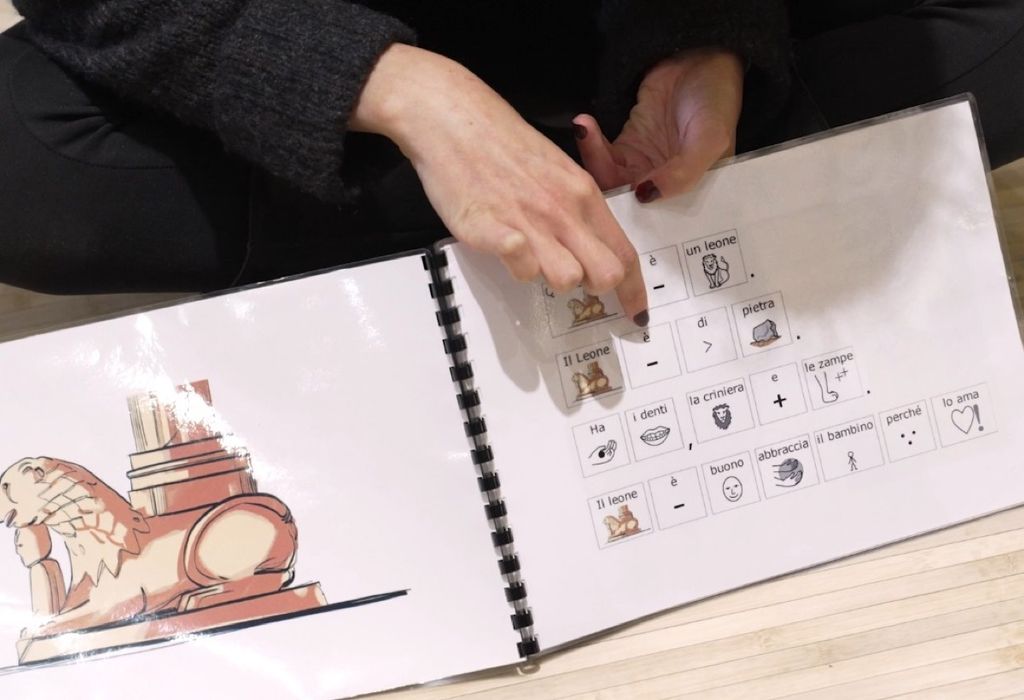 L’operatrice culturale Martina Marucco ha proseguito illustrando le azioni del progetto. La formazione sui temi della comunicazione semplificata e facilita e sull’utilizzo dei libri in simboli, a cui hanno partecipato le operatrici dei tre istituti MAB, si è dimostrata fondamentale grazie agli esperti della Fondazione Paideia di Torino. Oltre all’acquisto dei primi libri in CAA, messi a disposizione per la Rete Libri per tutti di cui la Biblioteca diocesana fa parte, il valore aggiunto dato al progetto è la creazione di nuove storie, come quella del leone di pietra della Cattedrale di Alba tradotta dalle operatrici nei simboli della Comunicazione Aumentativa Alternativa. La realizzazione dei laboratori di lettura inclusiva ad alta voce tra il Mudi e la Sala MAB, ora parte integrante della proposta didattica del Museo Diocesano, si è dimostrata vincente nel coinvolgimento delle famiglie con bambini nella fascia 0-6 e stranieri.