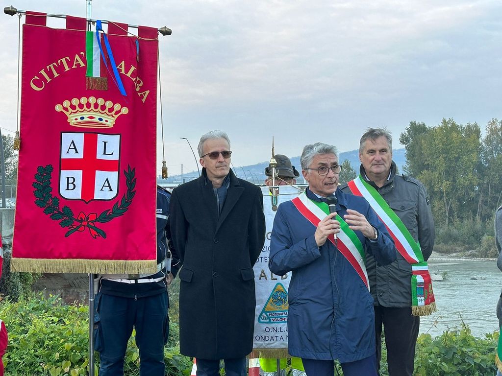 Il sindaco Carlo Bo insieme all’assessore Massimo Reggio e ai rappresentanti delle associazioni di Protezione civile oggi, sabato 4 novembre, si sono dati ancora una volta appuntamento sul ponte albertino per lanciare nove rose bianche nel fiume Tanaro, una per ogni vittima. Presenti anche il consigliere regionale Maurizio Marello, i consiglieri comunali Alberto Gatto e William Revello, il sindaco di Piobesi d’Alba Mauro Prino. Dopo la cerimonia è stata celebrata la messa nella Cattedrale di Alba.