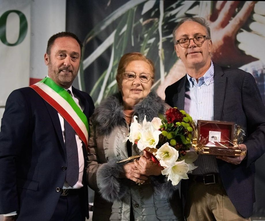 Altro momento significativo della cerimonia è la consegna del porro d’oro allo chef stellato Giampiero Vivalda, titolare dell’“Antica corona reale”, storico ristorante di Cervere che Giampiero, con il papà Renzo, da poco scomparso, ha portato all’invidiabile traguardo delle due stelle Michelin. Accompagnato sul palco dalla mamma, Dotta Giacomina, per anni parte attiva nella gestione dell’attività.