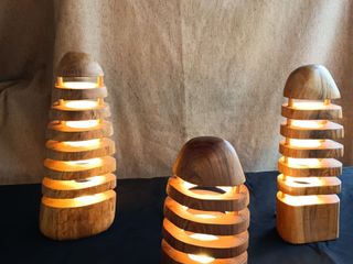 Ci trasferiamo verso il paese, in Biblioteca, dov'è allestita una delle mostre d'arte che completano l'offerta degli organizzatori. Bellissima sorpresa. Troviamo ad attenderci Bruno e Stefania Nicolo, padre e figlia, e si vede, artisti del legno. Bruno, boomer in ottima forma, ha appreso l'arte nella segheria di famiglia, a Verdobbio. Stefania, giovane e luminosa, è passata attraverso il liceo artistico e l'accademia. Partenze diverse per esiti ugualmente eccellenti. Bruno, che ha un laboratorio a Pollone e un’esposizione permanente nella baita di famiglia lungo il sentiero che porta alla Trappa, parla attraverso le sue opere, sintesi di figure umane, uscite da una sorta di metamorfosi. Viene voglia di accarezzarle. L'arte diventa design con le sue originalissime lampade, sezioni di lamelle ovoidali spezzate dalla luce. È legno che diventa spirito.