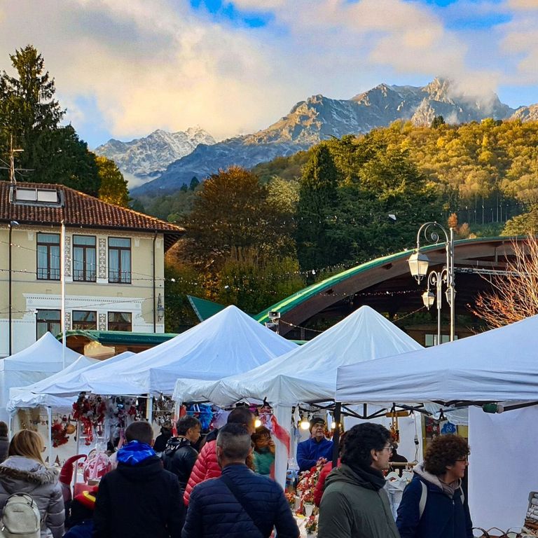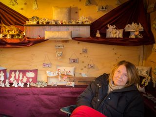Gironzoliamo tra le casette, facendoci indicare i fedelissimi del mercatino. Sono tre, ci dicono, quelli presenti dal 2002 a tutte le ventuno edizioni. Il primo è Livio Mondin con le sue baite in miniatura, costruzioni in pietra e legno che ci restituiscono l'anima delle nostre alture, il nostro paradiso a pochi metri dal cielo. Ne espone oltre una ventina, capolavori di architettura e pazienza. Poco più avanti incontriamo Daniela Fava Piz, con i suoi piccoli cuscini, sacchetti, cuori e angioletti imbottiti e ricamati a punto croce con fiori, montagne, slitte e renne natalizie. Un'idea regalo delicata. Poi la casetta di Mario De Luca, di poche parole, ma di caldissime proposte: le mufle di Sordevolo, le antiche pantofole in panno, realizzate in pura lana. Ognuna è un pezzo unico, a tinta unita o variegata. Rigorosamente fatte a mano.
