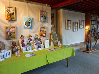 Stefania, che si è trasferita in Val Gardena ma torna a casa quando è possibile, s'ispira invece al mondo delle fiabe e della fantasia. Crea le sue margarine, bambole lignee che sembrano uscire da un racconto scandinavo. Solari e colorate. Ci commuove il suo lavoro intitolato Amore infinito, realizzato al tempo dell'Incoronazione della Madonna di Oropa. Un piccolo essere umano di fronte all'abbraccio della divinità, che ci comprende in senso fisico e interiore. Ora l'opera è diventata anche un ciondolo, prezioso, da custodire.