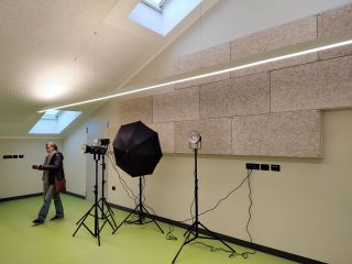 Il Preside Roberto Buongarzone illustra acustica e materiali, i lavori di isolamento termico del tetto e di installazione di pannelli fonoassorbenti, riservandosi di ringraziare anche i progettisti “per aver colto lo spirito del liceo artistico consegnando ai ragazzi uno spazio colorato e arioso”.