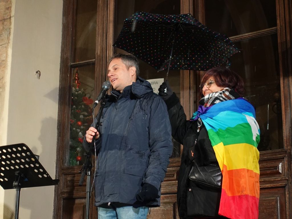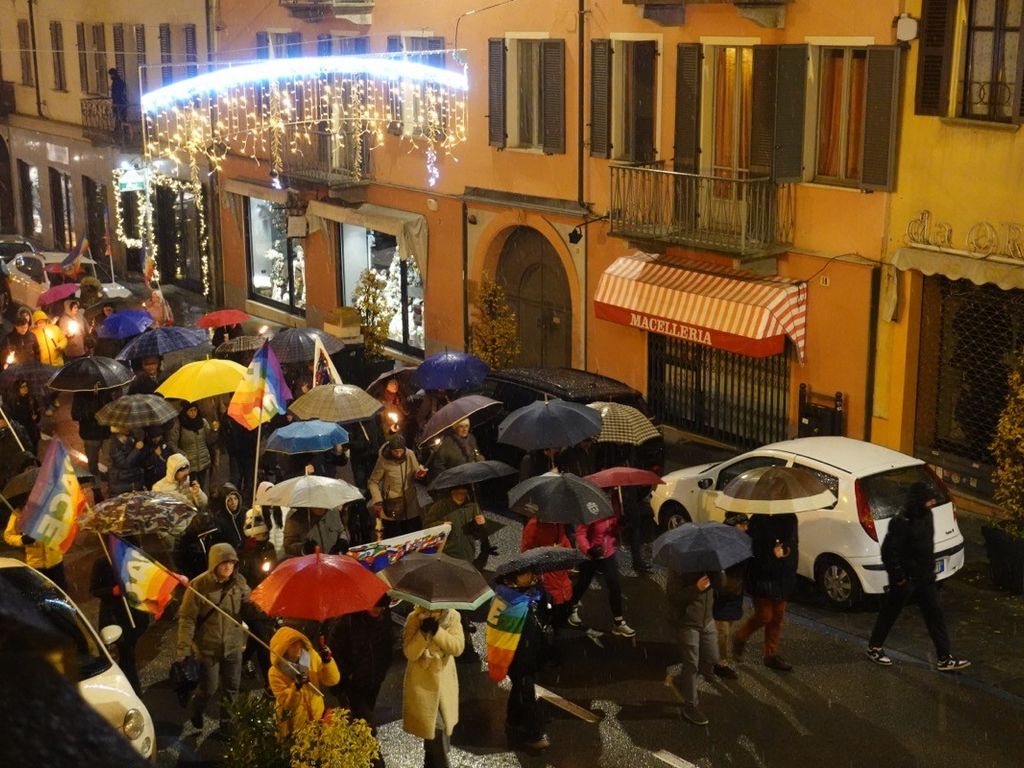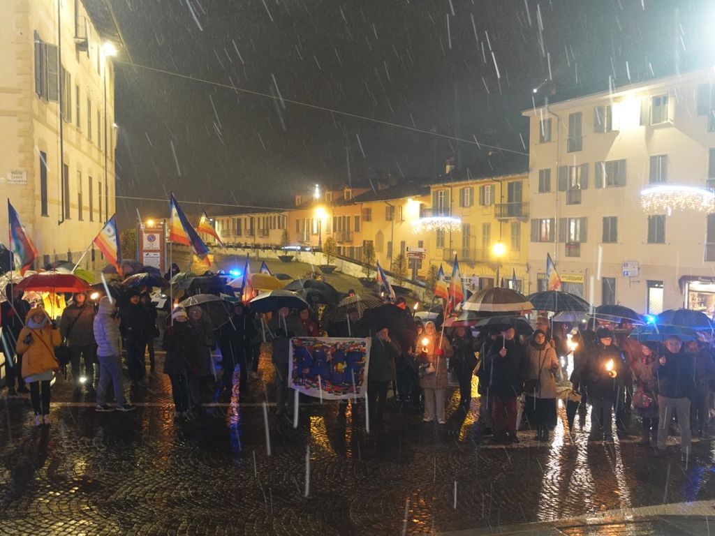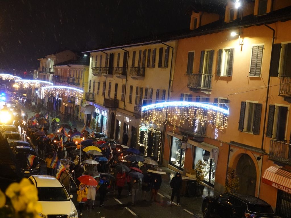 La fiaccolata di lunedì 4 dicembre ha riempito di colori arcobaleno le vie di Bra, registrando una buona adesione da parte della cittadinanza, che ha risposto all’invito nonostante il freddo e la prima neve di stagione.