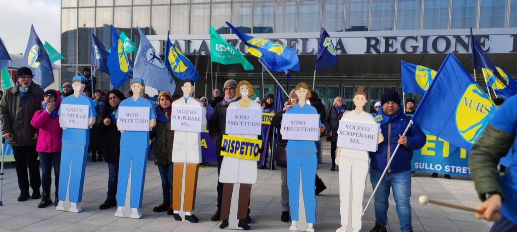 Una "folta delegazione" di infermieri e professionisti della sanità partita da Cuneo ha preso parte ieri alla manifestazione organizzata in piazza Bengasi a Torino dalla sigla Nursing Up assieme ai medici di ANAAO-Assomed e CIMO-FESMED, protagonista di un corteo che si è mosso alla volta del Palazzo della Regione in via Nizza. Quasi un migliaio tra infermieri e professionisti della sanità hanno sfilato a difesa della professione. In tutta la regione migliaia di infermieri e professionisti della sanità hanno incrociato le braccia.