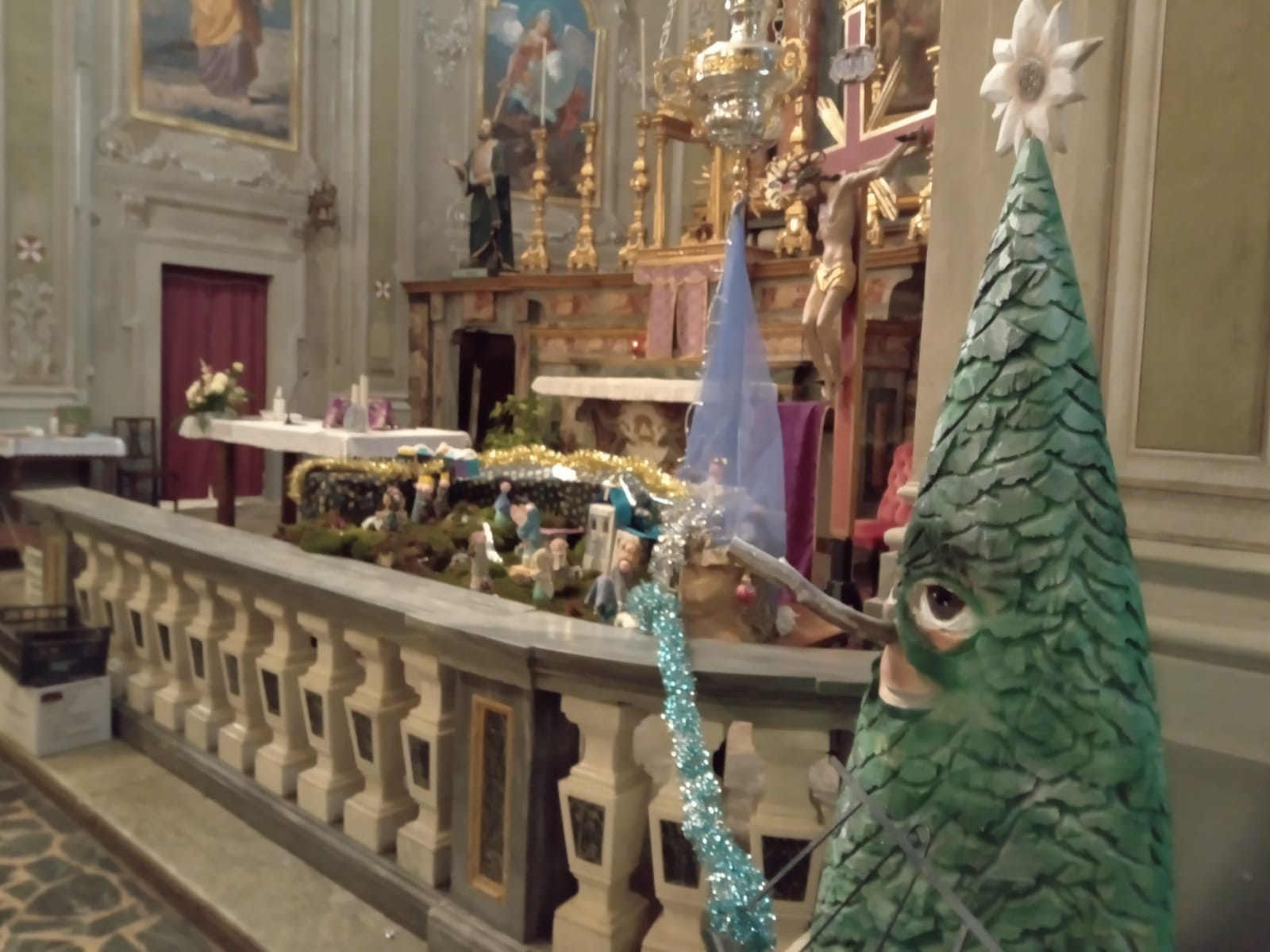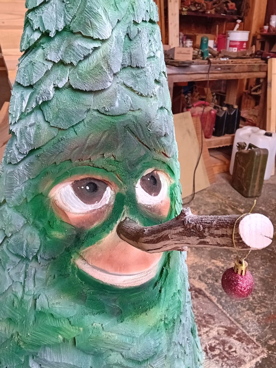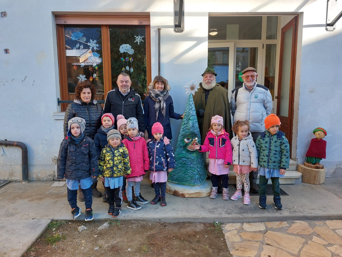 Quel pezzo di legno alto 1,5 metri “ha preso vita” tra le sue mani ed è diventato Sap: un abete con occhi, naso e bocca. E una stella alpina in punta. È stato addobbato dai bimbi di San Damiano Macra e, grazie alla disponibilità di Don Graziano Einaudi, portato in Chiesa, accanto al presepe allestito dai bimbi. Starà lì per tutte le feste natalizie e poi tornerà a scuola con i piccoli.
