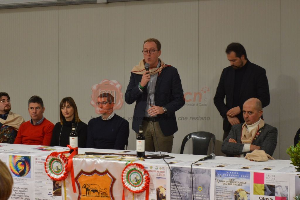 L'appuntamento si è tenuto oggi (domenica 10 dicembre) alle 11 sotto il tendone di piazza Divisione Cuneense. Presente il sindaco Nicola Schellino, i membri della giunta comunale, della Confraternita del Bue Grasso di Carrù e del Gran Bollito, della Regione Piemonte, dell'ATL del Cuneese. Ma anche della Banca Alpi Marittime, di Confartigianato, dell'ASCOM locale, di Confagricoltura (Valter Roattino, presidente di zona) e di Coldiretti.