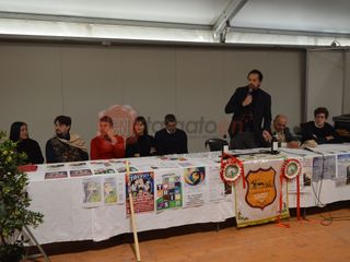 A seguito della conferenza stampa ufficiale i rappresentanti e le autorità si sono spostate nella chiesa dei Battuti Bianchi per la premiazione della mostra fotografica "a tema gualdrappa" della Fiera e la consegna del premio del Bue d'oro.