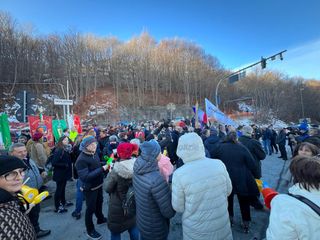 Sono almeno duecento le persone arrivate ai cancelli del cantiere per protestare e chiedere tempi certi di riapertura del nuovo tunnel.
