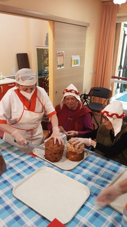 È stato meraviglioso vedere le nostre ospiti divertite e sorridenti distribuire panettone e the caldo: più il cibo distribuito o quello mangiato? Ah la glicemia!”
