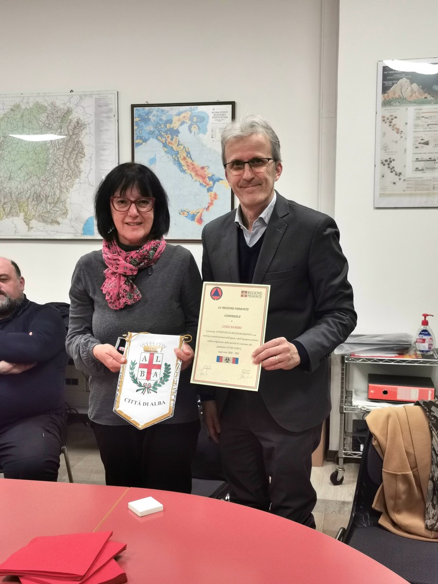 Il defunto Luigi Sandri del Gruppo comunale Volontari Protezione Civile di Alba ha ricevuto l’attestato di ringraziamento e il nastrino del Coordinamento di Protezione civile della Regione Piemonte “a testimonianza dell’opera e dell’impegno prestato nello svolgimento delle attività di contrasto alla pandemia Covid-Sars 2 negli anni 2020-2022”.