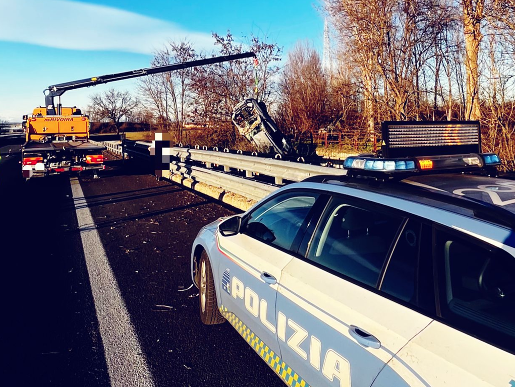 Auto esce di strada da un cavalcavia e precipita tra le carreggiate della Torino-Savona