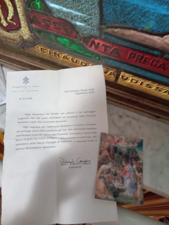 Ecco la risposta dal Vaticano: “Papa Francesco ha accolto con piacere il bel messaggio augurale che Gli avete indirizzato in occasione delle Festività Natalizie.