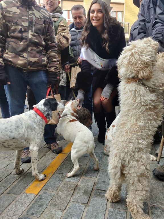 Ce n’erano almeno un centinaio, accompagnati e coccolati dai loro 'trifolao', di tutte le razze e di tutte le stazze e nella centralissima piazza Italia hanno fatto divertire i presenti scovando rapidamente le 'trifule' nascoste, dando un saggio delle loro abilità.