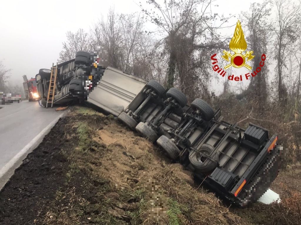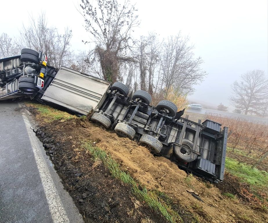 Nella mattinata di oggi, martedì 16 gennaio, i vigili del fuoco di Alba sono intervenuti sulla strada provinciale 3 tra Barolo e Novello per un autoarticolato ribaltato sulla carreggiata.