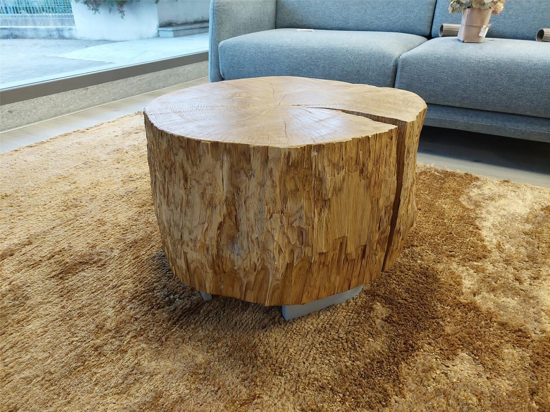 Elemento salotto design, sezionato da un tronco di rovere, con piedini. Unico e completamente artigianale. Prezzo: € 300