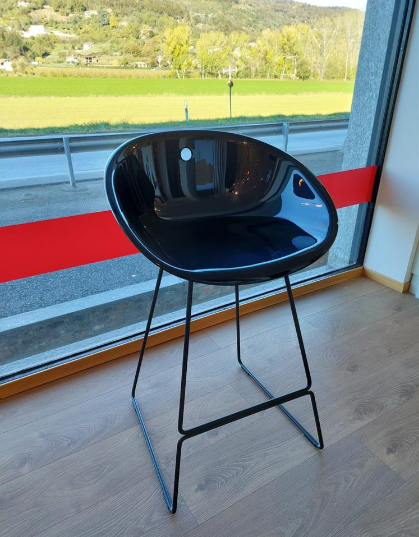 SgabellI mod. GLISS con seduta in polipropilene nera lucida e basamento in metallo nero.