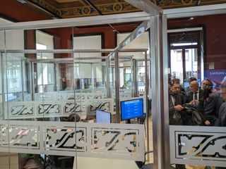Il locale è stato ristrutturato e reso attuale, con tante scrivanie separate da pareti trasparenti dove l'imprenditore fruisce di assistenza personalizzata.