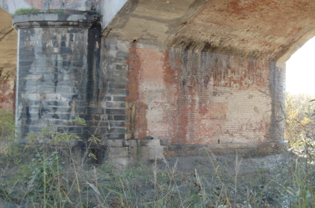Il ponte in muratura è lungo 190 metri ed è composto in totale da sette campate, ciascuna con una luce di 27 metri. L’impalcato, condiviso dalla sede stradale e dalla sede ferroviaria, è largo complessivamente 15,9 metri.