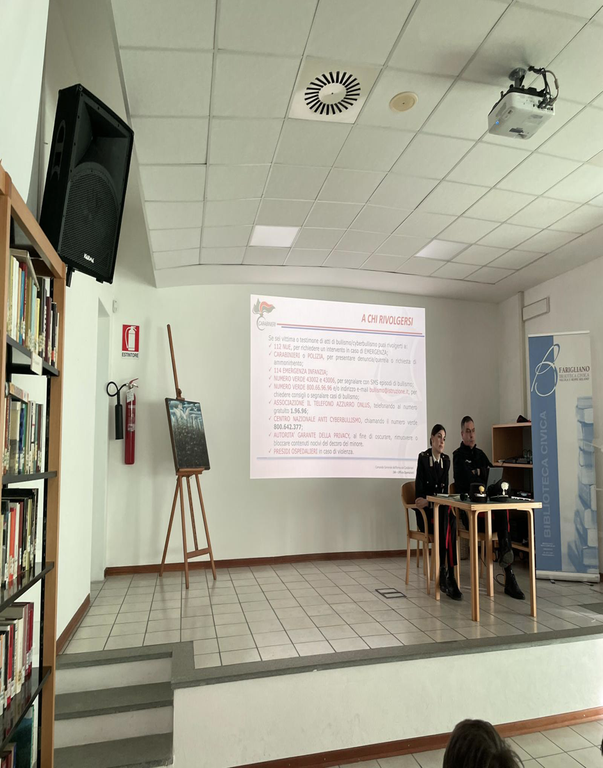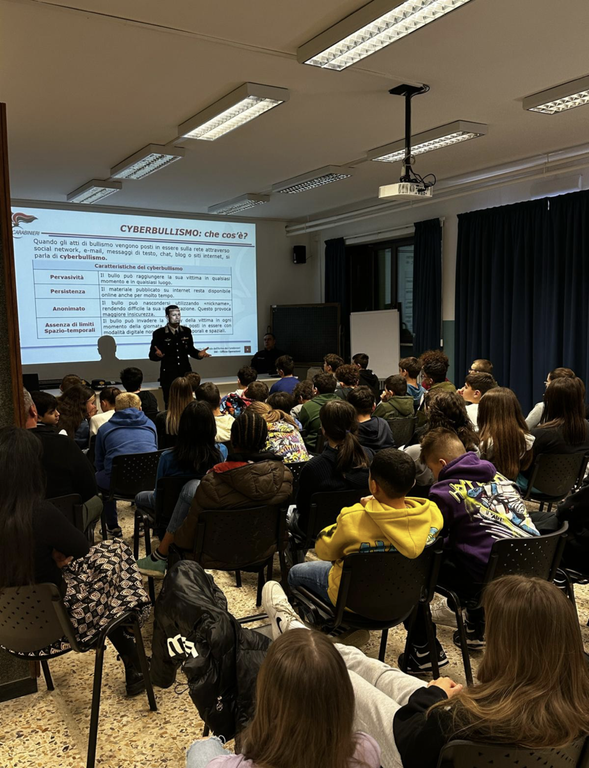 Nel corso dei due interventi, dopo la visione di un video dedicato all’ampia attività istituzionale dell'Arma dei Carabinieri, si è toccato anche il tema del bullismo e del cyberbullismo, vista l’imminenza della giornata nazionale del 7 febbraio, istituita dal Ministero dell'Istruzione per sollevare l'attenzione generale in merito a questi gravi fenomeni sociali.