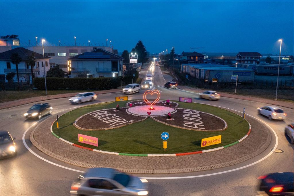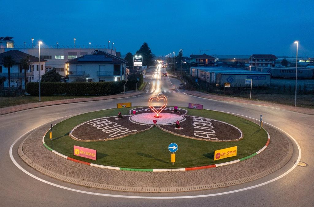 Il Gruppo Piumatti Bra Servizi omaggia la festa dell’amore con un nuovo allestimento a tema sulla rotonda di via Piumatti. La rotatoria stradale ormai da anni, è diventata il “quadro” cittadino sul quale l’azienda leader dei servizi ecologici “dipinge” con fiori, piante, sassi ed istallazioni belle e colorate alcuni dei momenti più significativi per la città e per i braidesi. Dal Giro d’Italia, agli auguri di Natale ed ora San Valentino, la rotonda di via Piumati è diventata uno degli angoli più vivaci di Bra e sono in tanti che, pur non dovendo transitare su quel tratto di strada, ci passano appositamente per vederla e fotografarla, per poi postare sui social la “rotonda - quadro” by Bra Servizi.