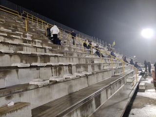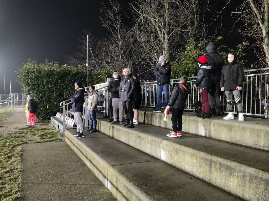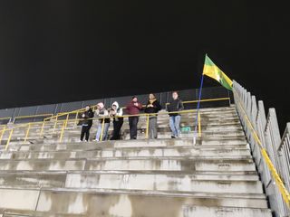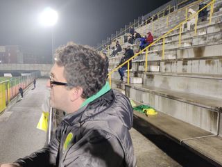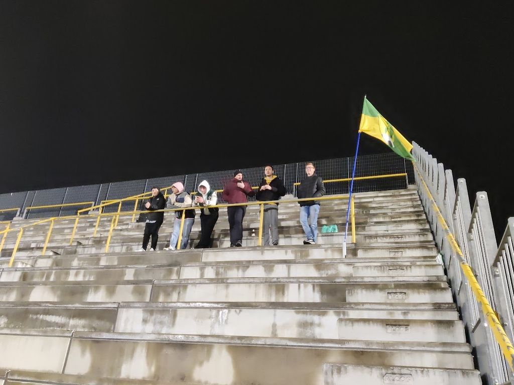Lo zoccolo duro degli ultras arriva un po’ in ritardo. Sono cinque o sei, srotolano lo striscione, sguainano la bandiera, è probabile che finita la partita si ritrovino in birreria con quelli in campo, impegnati nel tentativo di rimonta, insidiati dalle ripartenze, che una volta si chiamavano contropiedi.