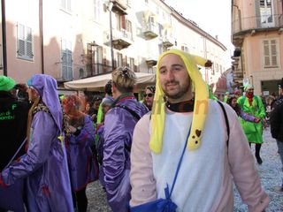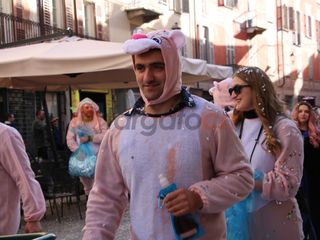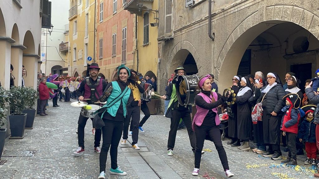 Nel primo pomeriggio, con partenza da piazza Santa Maria Maggiore, dove è stato posizionato “Incubo”, il carro di Mondovì che si è aggiudicato il secondo posto alla sfilata di Fossano, i gruppi mascherati si sono radunati per attraversare a ritmo di musica il centro storico di Breo.