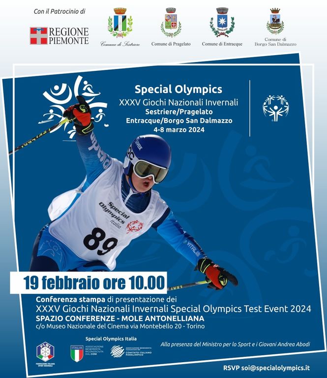 Lunedì 19 febbraio, alle ore 10.00, un luogo di eccezionale bellezza ed interesse storico-culturale sarà la cornice ideale per presentare un evento sportivo d’eccezione. Infatti, nello Spazio Conferenze della Mole Antonelliana al Museo Nazionale del Cinema, alla presenza del Ministro per lo sport e i giovani Andrea Abodi e del Presidente Nazionale Angelo Moratti, avrà luogo la Conferenza stampa di presentazione dei XXXV Giochi Nazionali Invernali Special Olympics Italia, in programma in Piemonte tra Sestriere, Pragelato, Entracque e Borgo San Dalmazzo dal 4 all'8 marzo 2024.