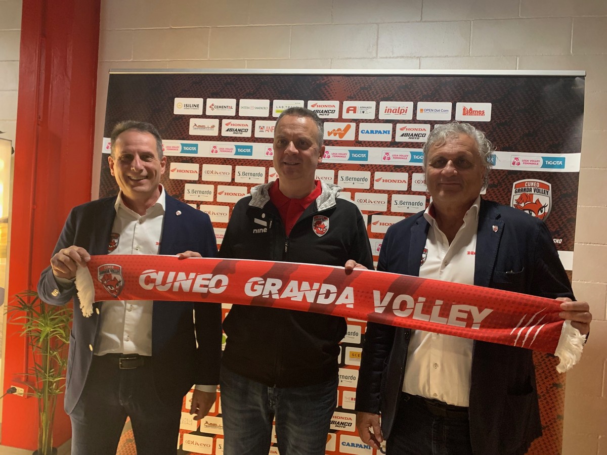 Il sostituto di Massimo Bellano, con il quale la società dei presidenti Emilio Manini e Patrizio Bianco ha sciolto consensualmente il rapporto, è stato presentato ufficialmente alla stampa in una conferenza senza fronzoli. Da una parte il presidente Manini e dall'altra il tecnico. Con in mezzo la responsabile della comunicazione di Cuneo Granda Volley, nonché presidente di Cuneo Granda Volley Academy, Barbara Pasqua, a moderare l'incontro.